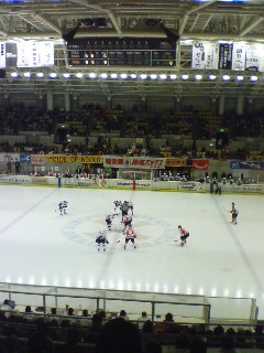 相手はクレインズ。いまアイスホッケーはアジアリーグ(だったかな?)となって中国や韓国のチームとも戦います。