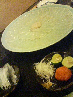 ふぐづくしですよ、ふぐ。フフフ〜〜〜〜〜もうしばらくふぐは食べなくていいってくらいタンノウ♪