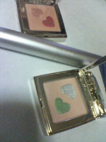 色モノコスメはRMKがやっぱり優秀!手前がアイシャドー、奥はチーク。ハートマークが可愛らしい♪まぜまぜして色味を調節します。