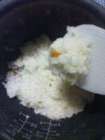 お米1合に対して切り餅1個でもなかなかいいカンジでしたよん。梅干しを炊き込むところまでマネっ子です。