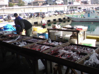 漁港の中にある食堂であじのお刺身定食を食べ、市場ではおばちゃんたち手作りのあんこう汁などに舌鼓。