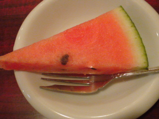 疲れたので外食。最後にすいかが出てきて、何だか胃もすっきりちゃんです♪