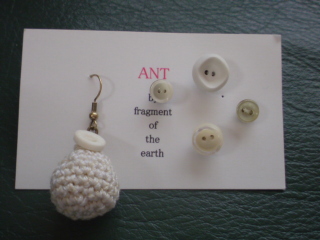 頼んで作っていただいた、すずピアスとボタンピアス。ピアスの穴の数のぶん、こんな白をベースにしたセットで仕上げてくれたantさん。