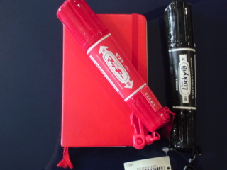 以来こうして、ワタシの赤の手帳に赤のマッキーペンケースがぶら下がっています。中にはラミーの万年筆♪