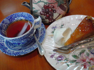 昔っからある紅茶の美味なお店で、練習後のブレイク。タルトタタン、が先週からお目見えだって。
