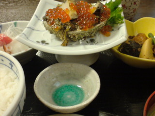 写真、真ん中のアワビのカラに入ってるのが海宝漬☆
