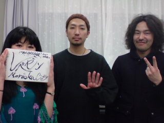 mad bridge。3人組。そのうちMCのクイジアライムさん(どうしても‘クジイ’さんって言ってしまう…すまぬ)が真ん中。右に写るやや寝ぐせを整えてない風貌の方は、某大手CD店盛岡の店員兼DJと紹介しておけばいいか?