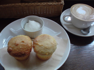 初めて朝、行きました。モーニング、食べました。こちらのマフィン。生クリームがまた、絶品。