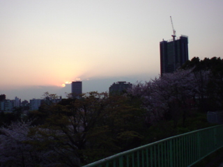 ちょこっと小高いところから、夕陽がキレイ。桜も満開。