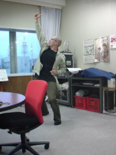 写真は郷ひろみさん(今年のツアー行くわよー♪)の新曲「男願GROOVE」に合わせてスタジオにてエクササイズ???する、Sディレクター(ギックリ腰)…。