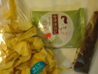 その場でいただいたおみやげが、いちばん美味しそうです(笑、写真左のチップス)。