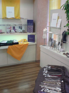 写真手前・ネックレスのようなものが、ニューヨークのグラスホルダー(メガネを胸元にかけておくもの)ブランド・ラ ループ。