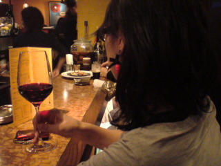 初ボジョレー、いただきましたっ(^^)/▽そんな女史のシルエットをパチリ☆