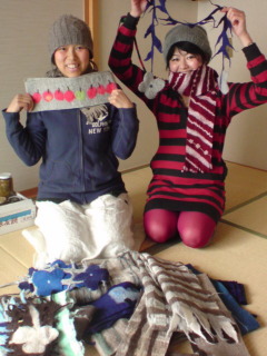 先日。くじ あさこさんの工房へお邪魔した模様をお伝えしました♪ きのう、おとといと。くじあさこFELT展がありました。盛況だった様子がブログにつづられれました(くじあさこ、で検索すると見られます)。 会うなり…「日々コレちえぞうのちえぞうさんですか?」と、くじさん(笑)。 ワタシが首に巻いてる、えんじとピンクのマフラーを連れて帰ってきました。 最近、取材に行って買い物をしてる、というパターンが多い…(^^;) ホントにあったかい☆ 手作りのあったかさもあるのでしょう。うん。