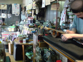 ←リンク貼ってますが、肉屋なのに所狭しとギターやアナログ盤や本が並んでる、いったい何屋さん?って所(@_@)