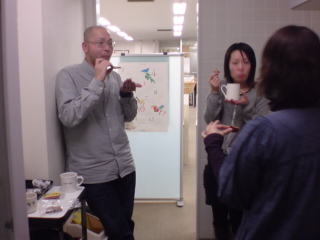 おいしい紅茶にしばし時を忘れて給湯室で話し込む面々。OLさんの休憩みたいでしょ(うふ)?
