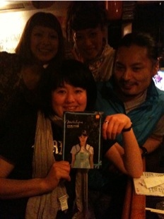 「岩手美少女図鑑」ディレクター氏(写真右)&カメラマンさんと飲む。後ろの女子はお客さん。もうみんないっしょにパチリ!
