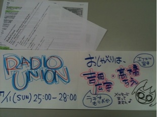 「Radio Union」…このあと、7月11日 25:00〜28:00