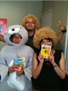 この夏オススメの本を紹介しに来てくださった、さわや書店・田口さん(左)も…(笑)!!!
