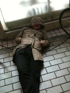 これまた良い子はマネしちゃいけませんよー。道で寝ちゃいけませんよー!
