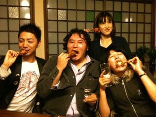 左はじが、じゅんくん。そのお隣が、今回のライブにあたり感謝カンシャ!しなくてはならない、東屋の馬場さん。後ろのキレイなお姉さんは、ゆみさん。