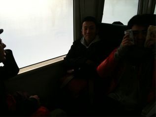 全く逆光(銀世界やね〜)なので顔が判別し難いですが、隣あった2人組は東京からの参戦!行きから音楽バナシでメチャ盛り上がる!うわ〜…ホントはさくっとビール飲んで、さくっと寝て。体力温存の目論見が外れる(笑)。あ、隣の2人組、ツイッターかなんかでメッセージくれたら嬉しいな〜!こんなオモロイ縁もありでしょ!