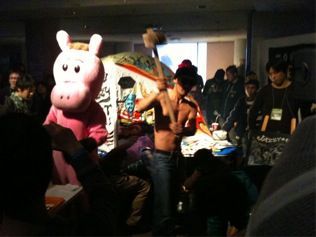 さらに、つきたてのお餅はアーティストが振る舞ってくれます。今年COMA-CHI姫&GAGLE(だったと思われる…人が殺到して、顔がイマイチよく確認できんかった)!