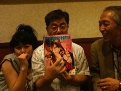 じゃじゃ麺を待つ間に手にした風俗雑誌(笑)。ちえぞうも負けじとエロポーズ(が、ただの残念な感じである)☆