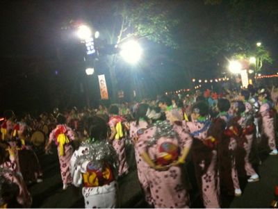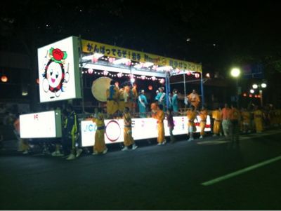 企業・団体などのグループが登場して、いっちばん最後には。見ている人が誰でも参加できる「輪踊り」というのが行われ、本当に誰でも参加できるのよー♪