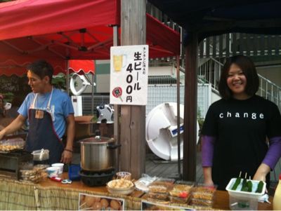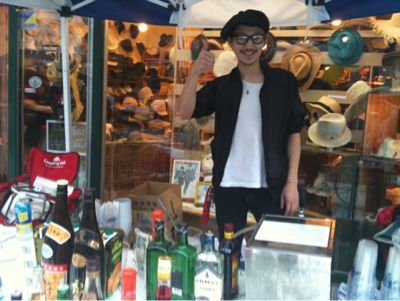 おなじみNEAT RECORDS・コンタおじさま。今年もお店の前でライブ&アルコール販売、自らやってますん!