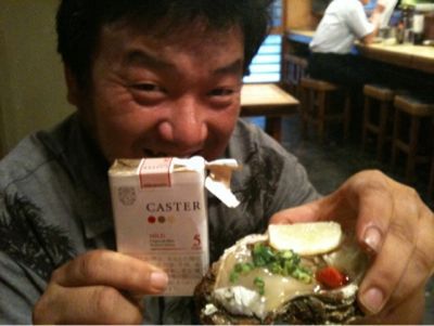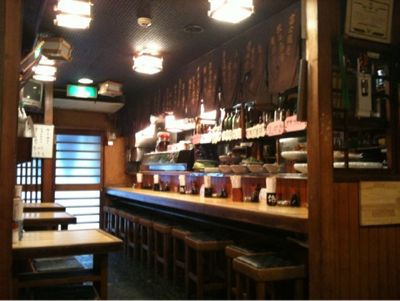 隣のテーブルではすでに「キンミヤ」の1升瓶をどーんとテーブルに置き、い〜い調子になってるオジさまサラリーマンチームが!