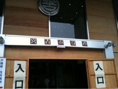 ちなみに写真は。宮古市役所の入り口です。これが正面の入り口。全く直っていません。