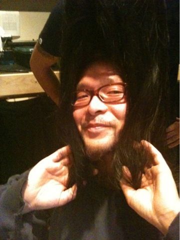 岩手の宝と呼ぶユニット・EL SKUNK DI YAWDIE、カツシさんのロン毛でふざける坊主の図(笑)。しかしこうやって見ると、カッちゃんの髪、長げぇなぁ〜…