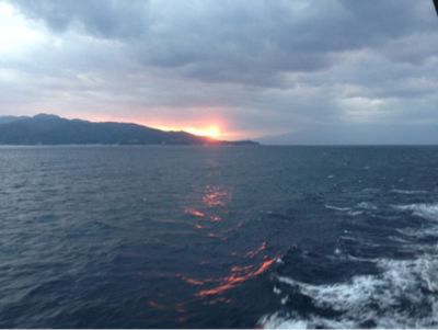 佐渡島を離れて、新潟へ向かうフェリーから。