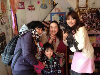 オーナー・ちあきちゃん(いちばん右)は同い年。ワンピが春色だわ♪そんなちあきちゃんはホント頑張り屋。彼女のバイタリティにはホント、参る。