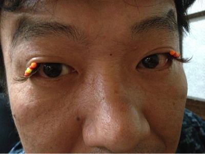 買ったばかりの、つけまつ毛。フカミたいひょーに装着してみる、の図(^^)