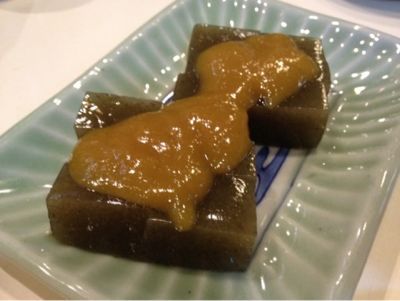 こんにゃくとも違う、なんとも言えない体感したことないよな歯ごたえ。なんでも、海藻を固めたものなんだって。