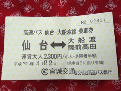 仙台から、高速バスに乗って。気仙沼を経由して、岩手に入る。陸前高田を通って、最初の目的地・大船渡へ。