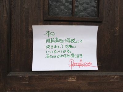 残念ながら炊き出しに出ていてランチがおやすみ。でも、まだこうして、シェフは炊き出しなどの活動を精力的に行ってる、ってこと。