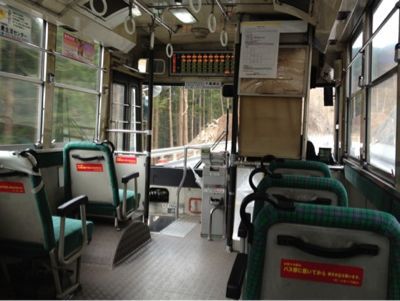 大船渡〜釜石へと北上するバスの車内。途中からはずーっと一人車内であった。