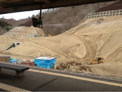 「急ピッチで進められている道路工事の現場(と、車内アナウンスで言っていた)」や、