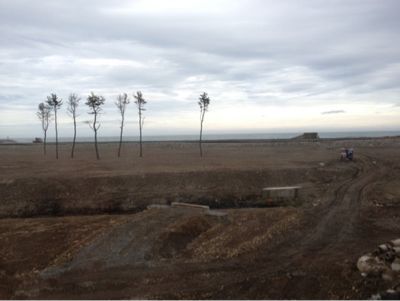 たぶん、ここも林だったんだろうけど、津波で木が根こそぎなくなったんだなぁ、なんて景色を。