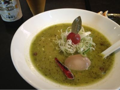 と、オーダーされたのが。見た目も鮮やかな「バジルde味噌ラーメン」!