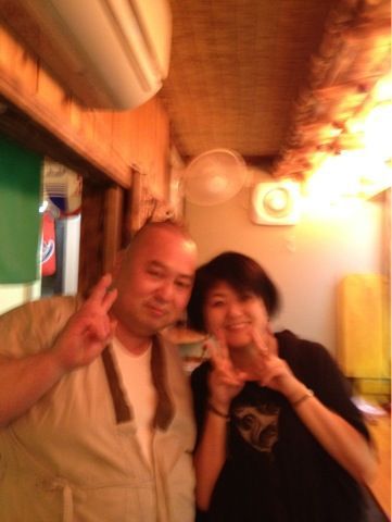 「福寿」というお店にて。マスターとパチ(ブレてるのは撮ってくれた人も酔っぱらってるってことですな、笑)☆