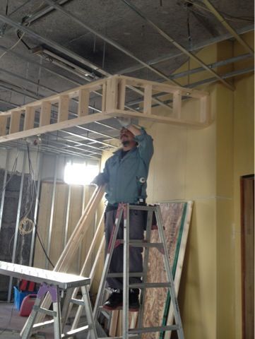 通称・オキナワ棟梁の手作業で、ライブハウスが作られてる。