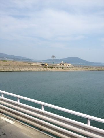 大船渡へ向かう途中。陸前高田を通って行くバスの車窓から見えた、一本松。
