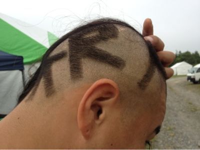 KESEN ROCK FESTIVALの頭文字・‘KRF’と剃る気合いを見せたオキナワさん(笑)!