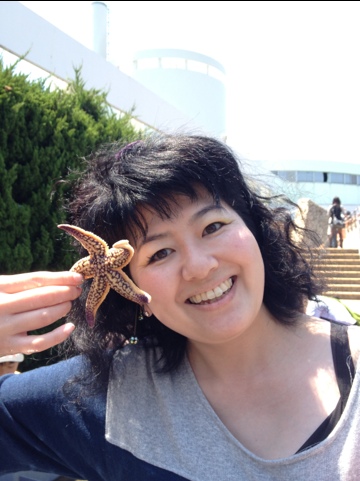 油壺マリンパークにて。こうしてヒトデやらナマコをさわって大はしゃぎの図♪ヒトデってすんごい硬いのね?