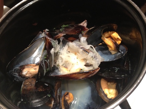 ムール貝のベルギービール蒸し、なんてシャレたお料理と決め込んでみたり。