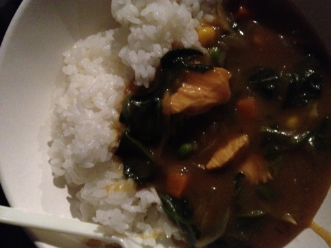 四星球のドラム・モリス氏特製「モリスカレー」。腹ごしらえに十二分なフェス飯500円ナリ(昼&夜で2回食べちゃいました、笑!優しい味でウマ〜い!)!